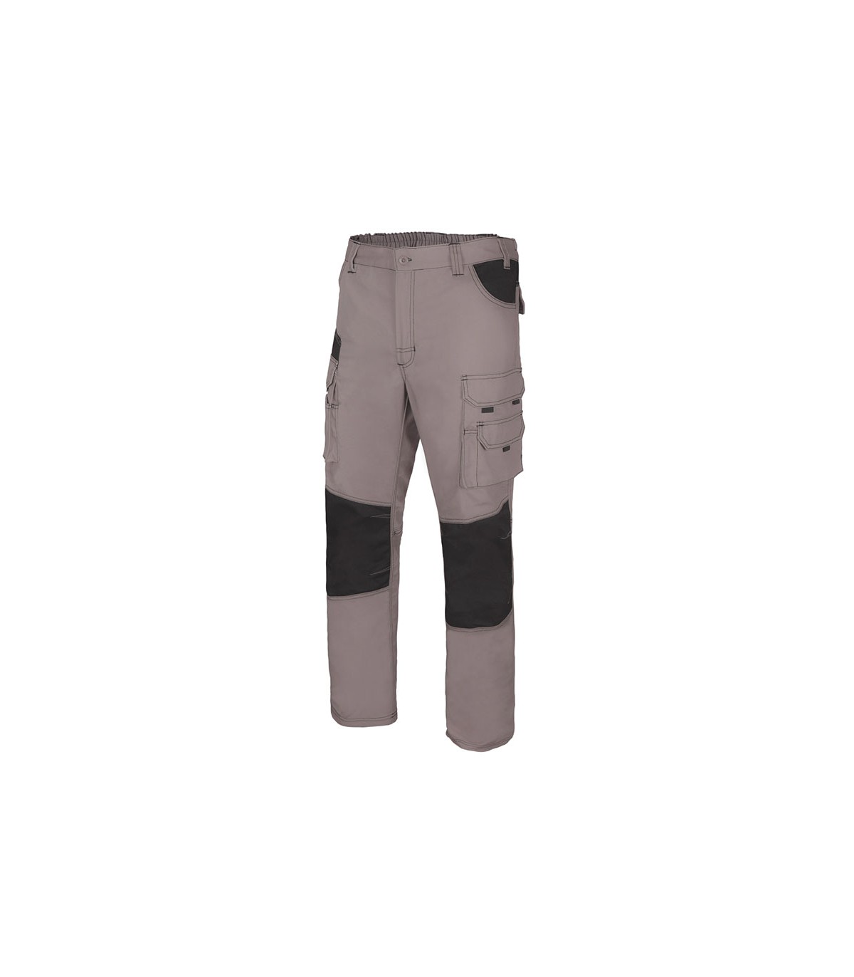 Tejido canvas. 65% poliéster - 35% algodón. Cintura elástica. Refuerzo en rodillas y trasero. Doble costura seguridad. 10 bolsillos.