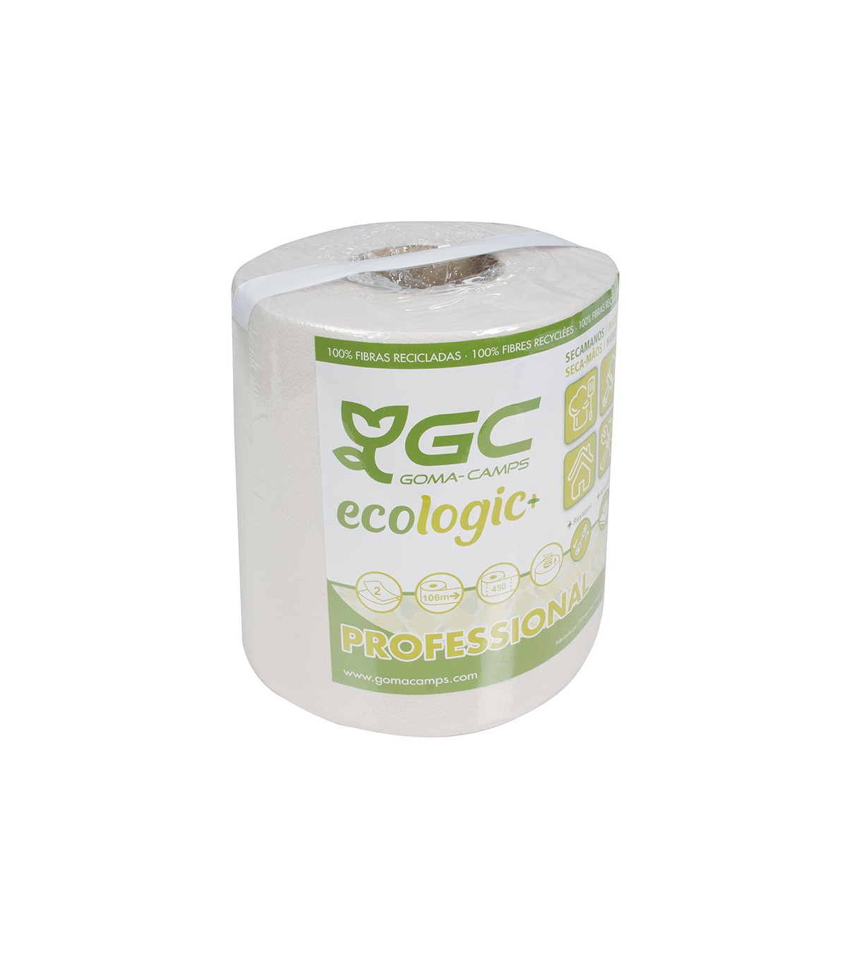 Celulosa reciclada doble capa. Absorbente y resistente. Corte fácil. Sistema unión de capas (ADD System). Mandril extraíble.