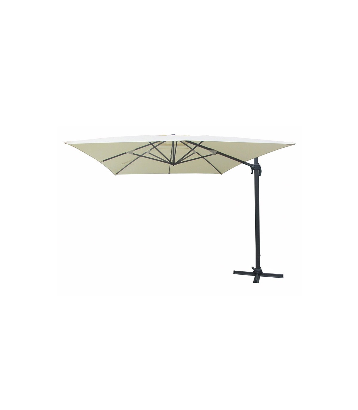 Toldo poliéster. Base giratoria 360º. Apertura mecánica manivela. Crudo/antracita.