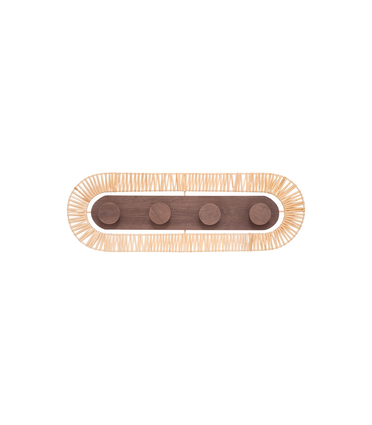 Estructura en MDF y ratán. 4 colgadores en madera color terracota.