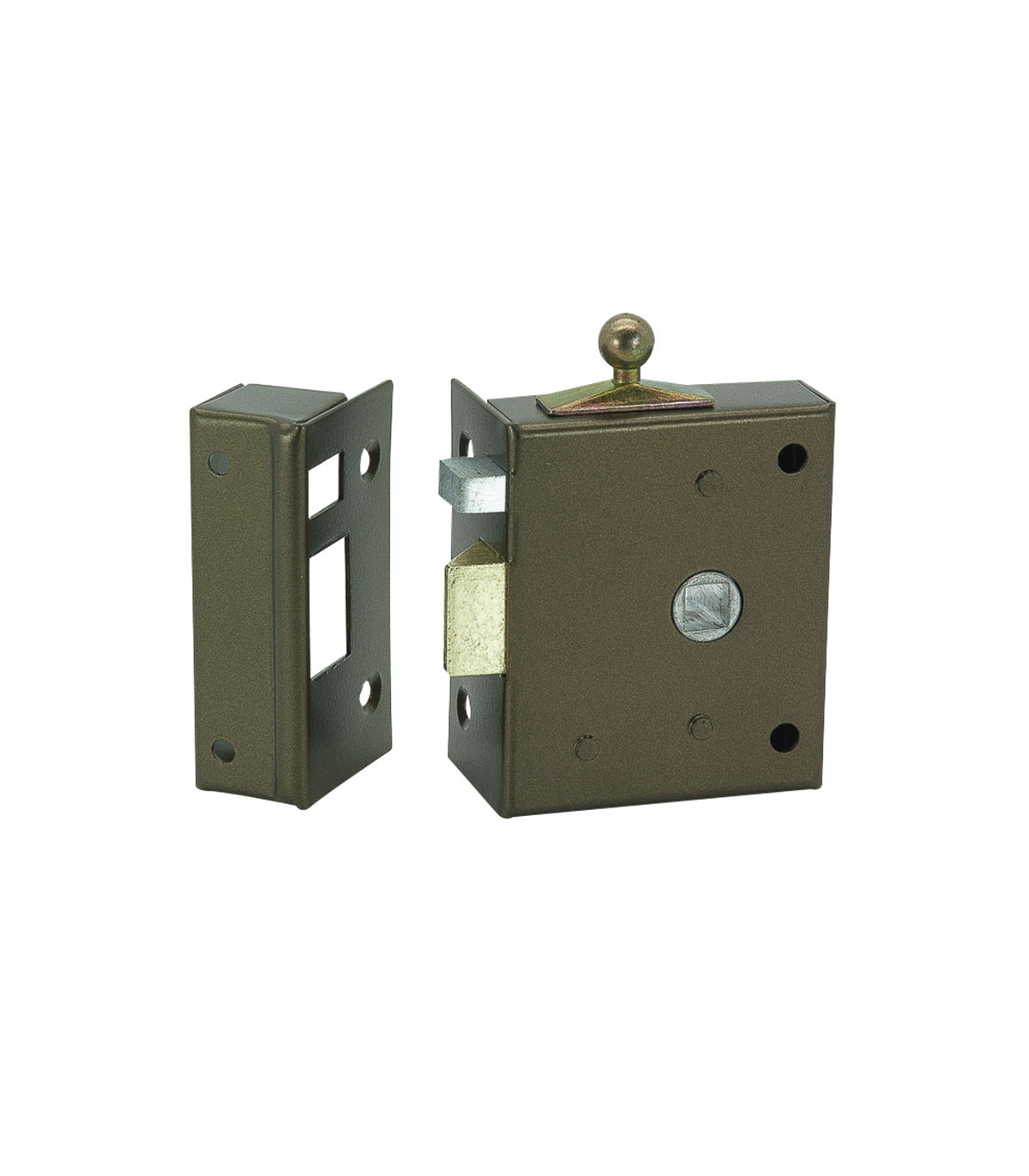 Accionado mediante manilla por ambos lados y palanca con botón interior. No tiene mano.