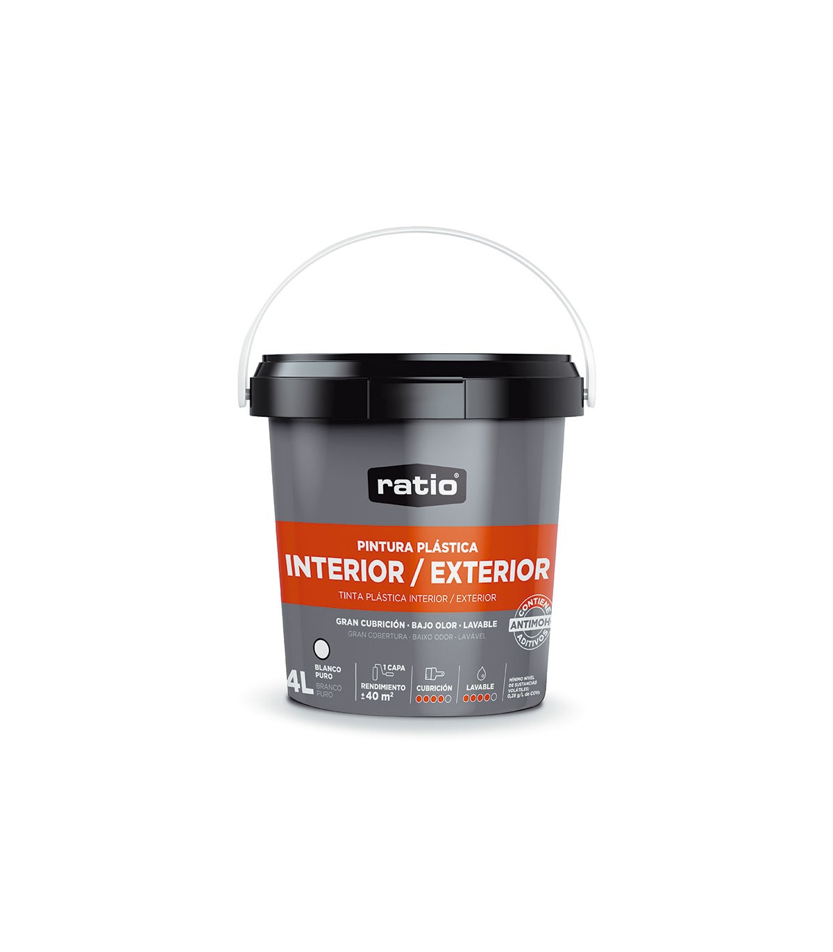 Pintura plástica de olor suave para interiores. Antimoho y lavable. Rendimiento: hasta 10 m2/l, secado al tacto: 1 h, repintado: 4 h. Ideal para todo tipo de superfícies de interiores y exteriores, gran adherencia para cualquier material de construcción, transpirable y acabado de calidad. Blanco puro.