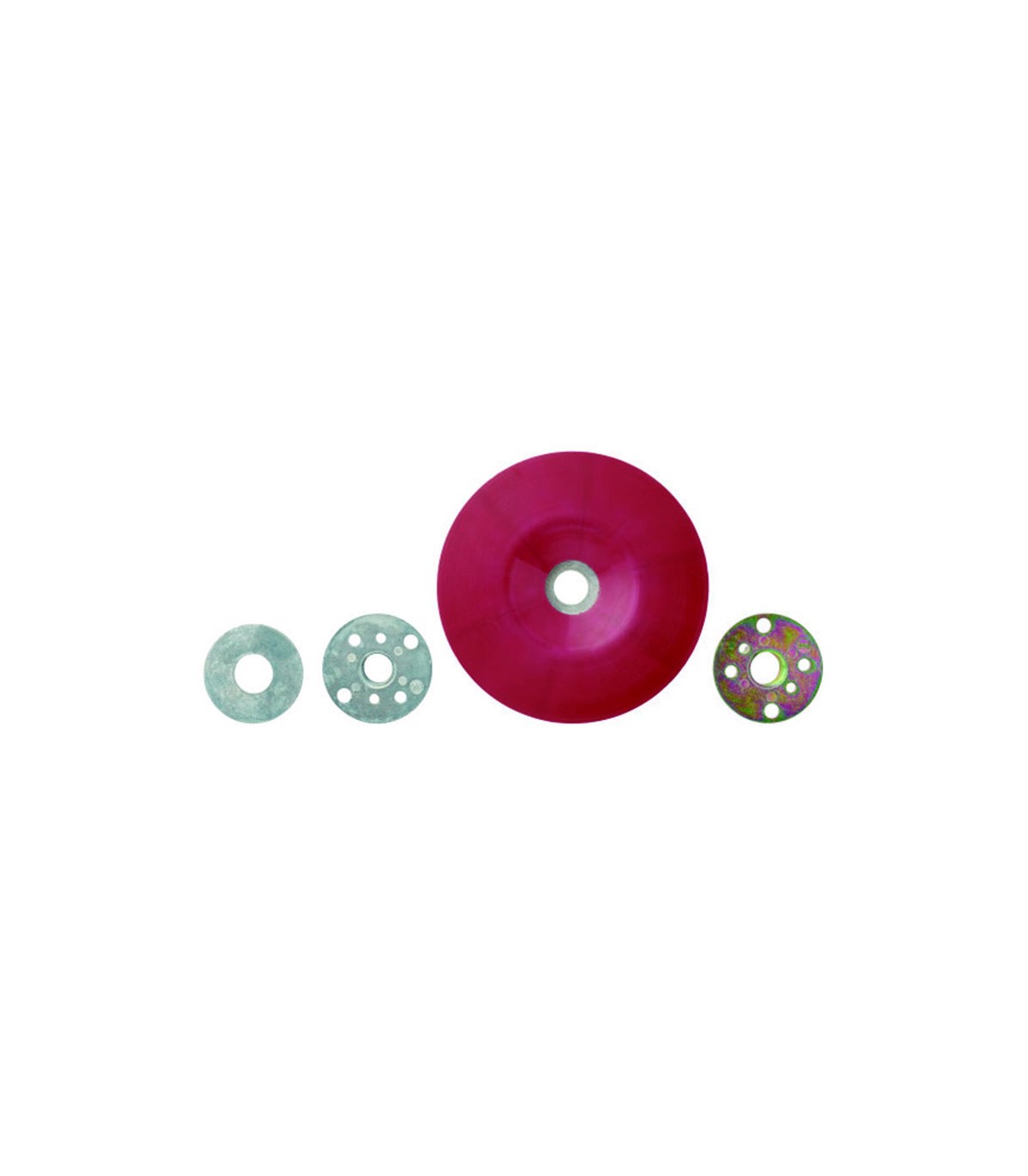 Soporte plano para discos de fibra de goma dura. Para la reducción de las vibraciones y los golpes. M14. Rojo blando.