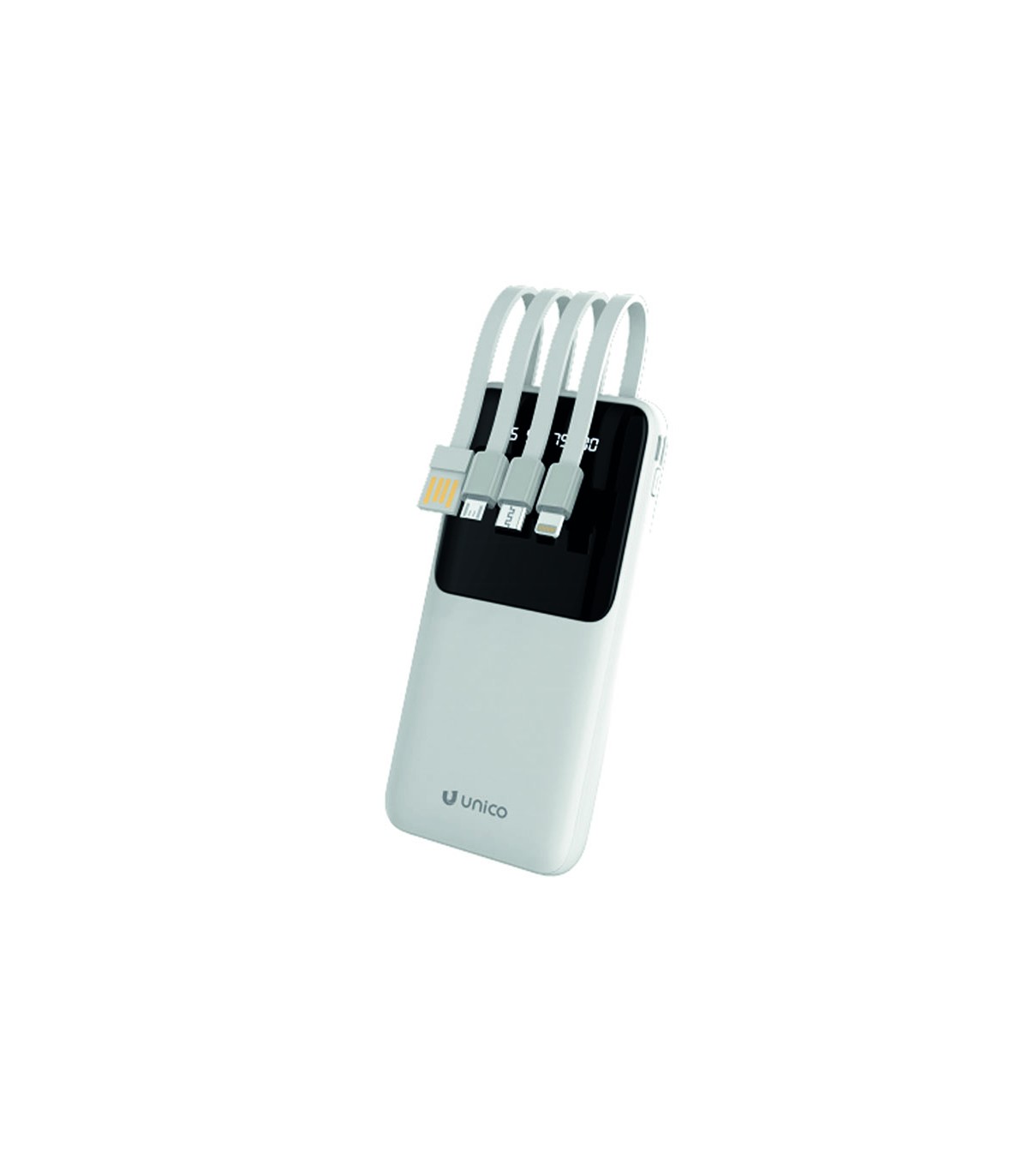 Incorpora pantalla display con la capacidad de la batería. El mismo dispositivo incorpora los cables para Micro USB, USB, USB-C y Lighting.