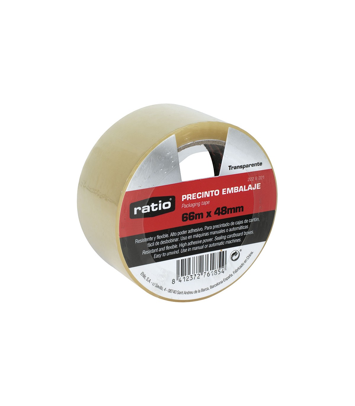 Rollos 66 m x 48 mm. Adhesivo de caucho natural sobre soporte de polipropileno. Resistente y flexible. Para precintado de cajas de cartón. Fácil de desbobinar. Uso en máquinas manuales o automáticas.