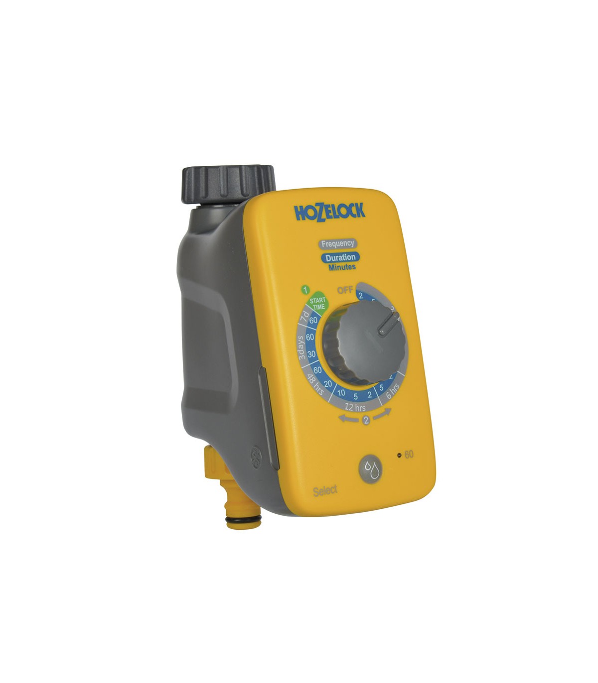 16 programas de riego. Permite riego 4 veces/día. Tiempo de riego máx. 60 min. Función riego inmediato. Funciona a baja presión (0,1 bar). 2 pilas AA (no incluidas).