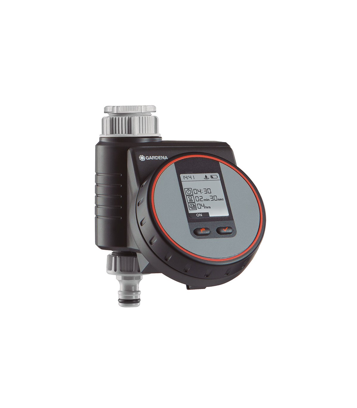Se inicia con un rotador externo para la selección de datos y un botón de confirmación. Función "regar ahora". Tecnología de parada segura. Pantalla LCD. Periodos ajustables en ciclos de segundos. Funciona con 1 pila alcalina de 9 V (no incluida)..