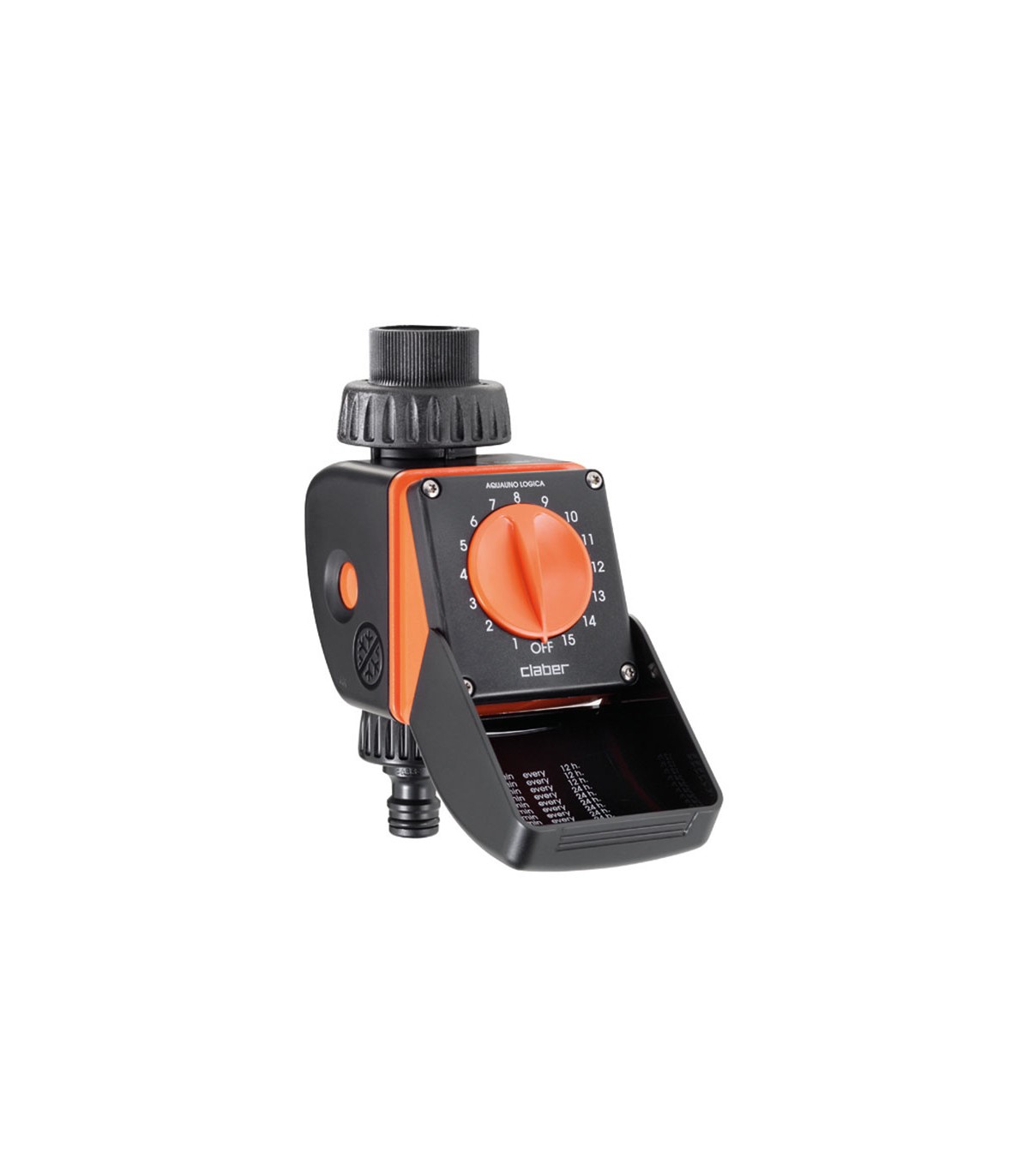 Programación por dial. Presión de trabajo hasta 5 bar. Frecuencia de riego desde 2 veces al día hasta 1 a la semana. Se programa en 1 segundo. Con 15 programas definidos (cada 12 h, cada 24 h, cada 2, 3 o 7 días). Fabricado en Italia.