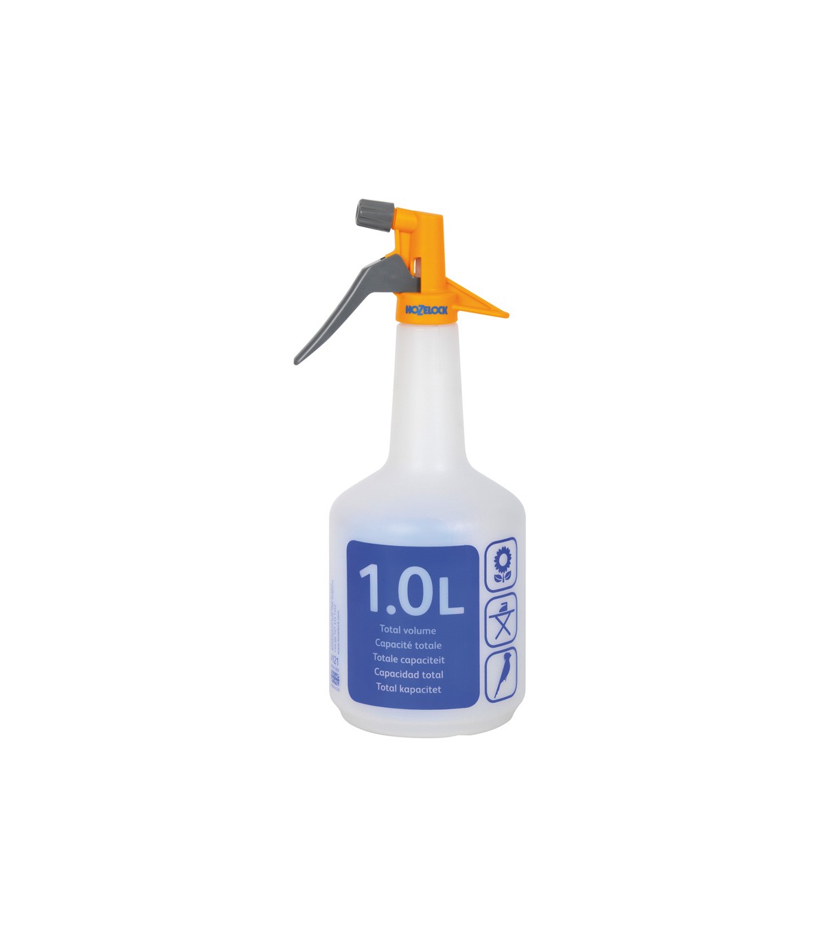 Pulverizador a gatillo pequeño para uso en interiores. Botella translúcida y graduada. Boquilla ajustable de chorro fino a atomizador.