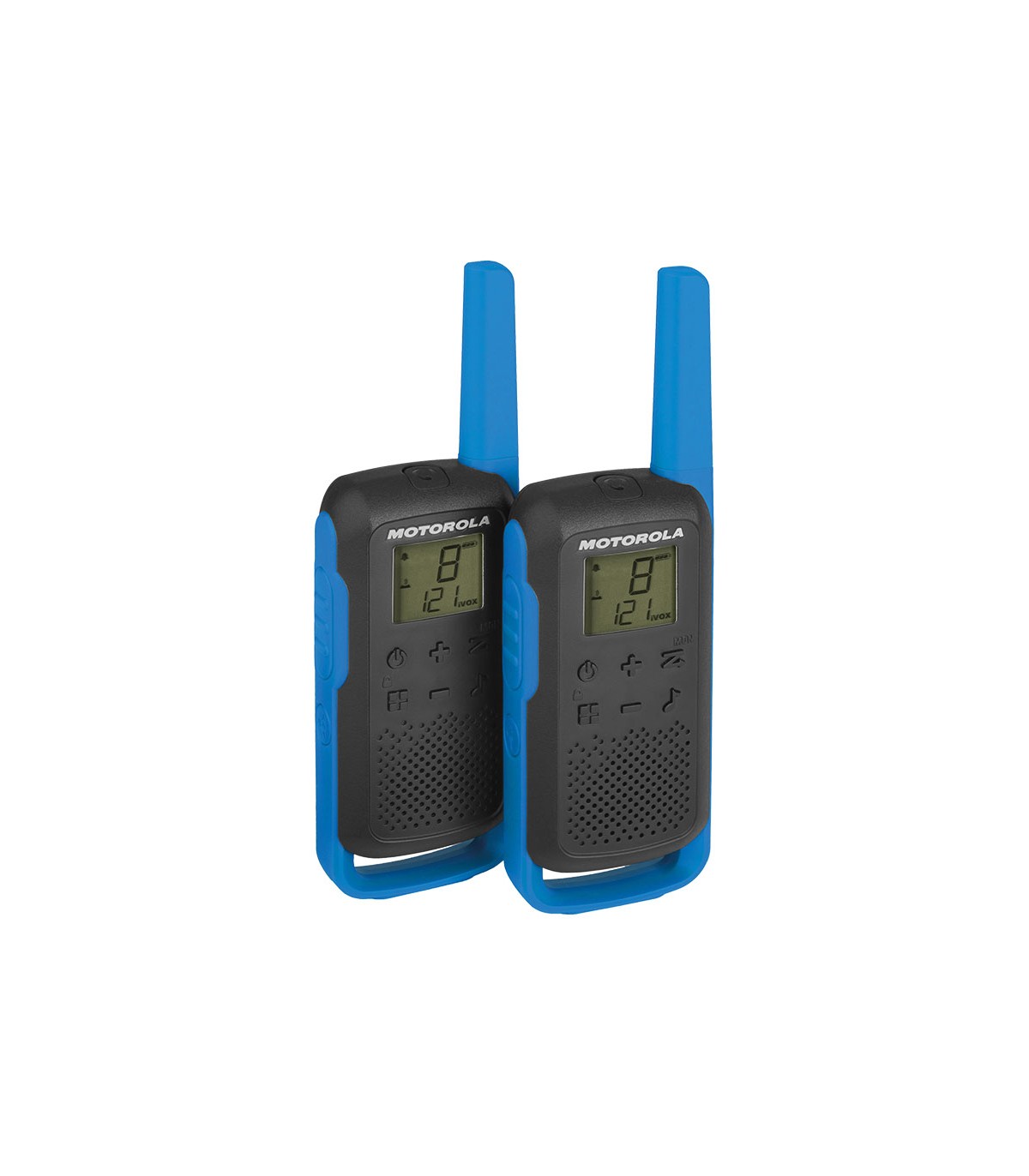 16 canales, 121 códigos. 20 tonos de llamada. Scanner de canales. Monitor de habitación. Bloqueo del teclado. Pantalla retroiluminada. Clip cinturón. Baterías recargables NiMH. Cargador USB incluido. 2 unidades. Alcance 8 km. (según condiciones del terrero). 5,4x3,1xh.16,5 cm.