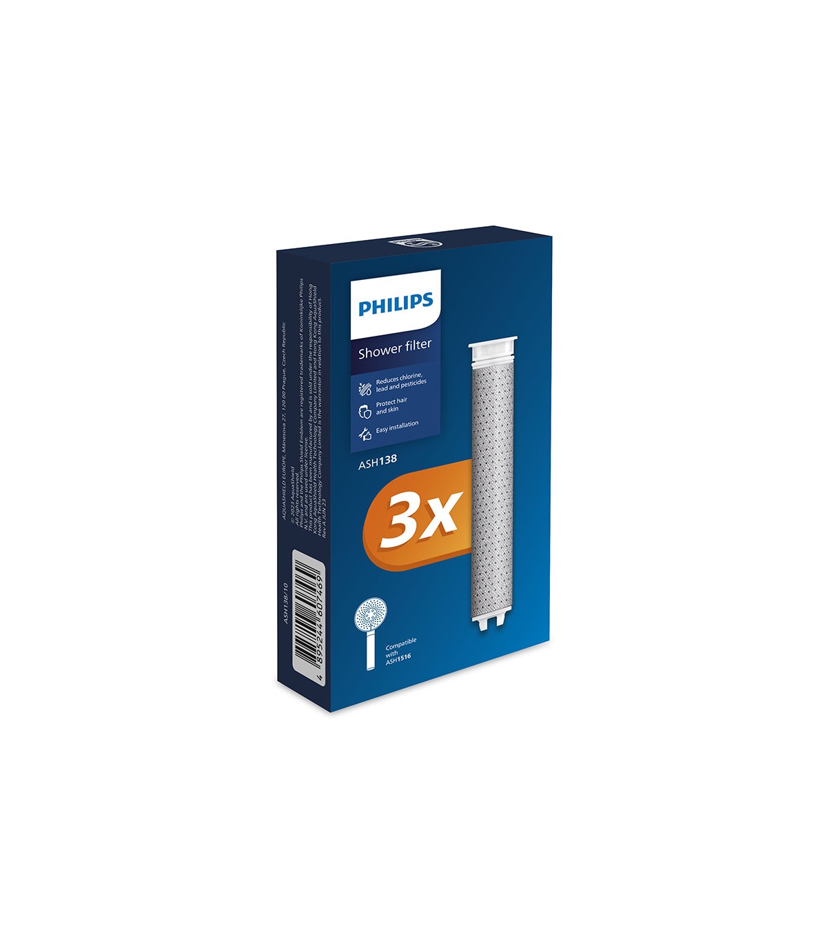 Con filtro ACF: elimina el cloro residual, los lodos, el óxido, otras partículas grandes y los olores. Acabado cromado.