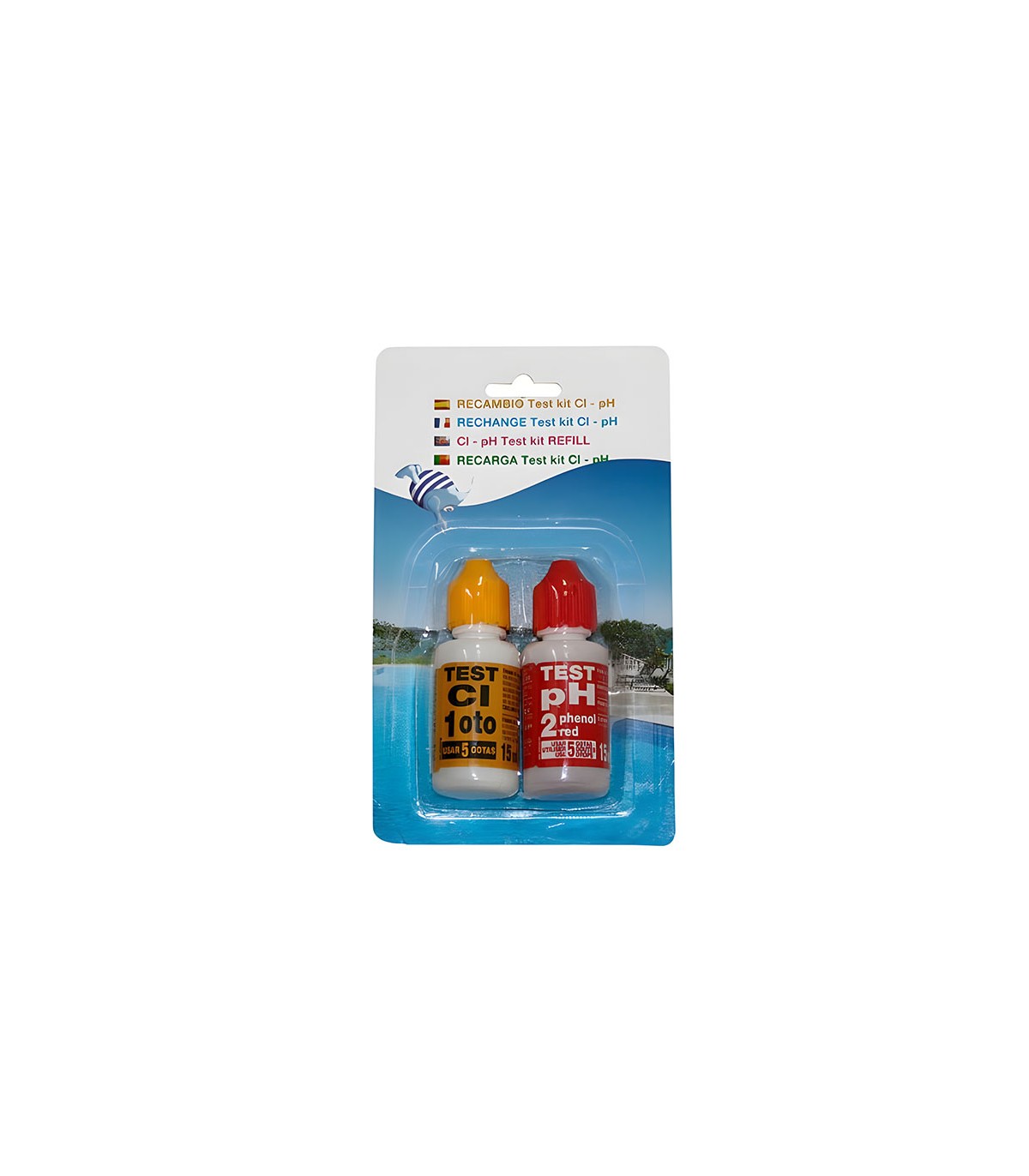 Contiene: Reactivo para la determinación del pH. Reactivo para la detección del cloro residual. Recipiente para efectuar los ensayos.