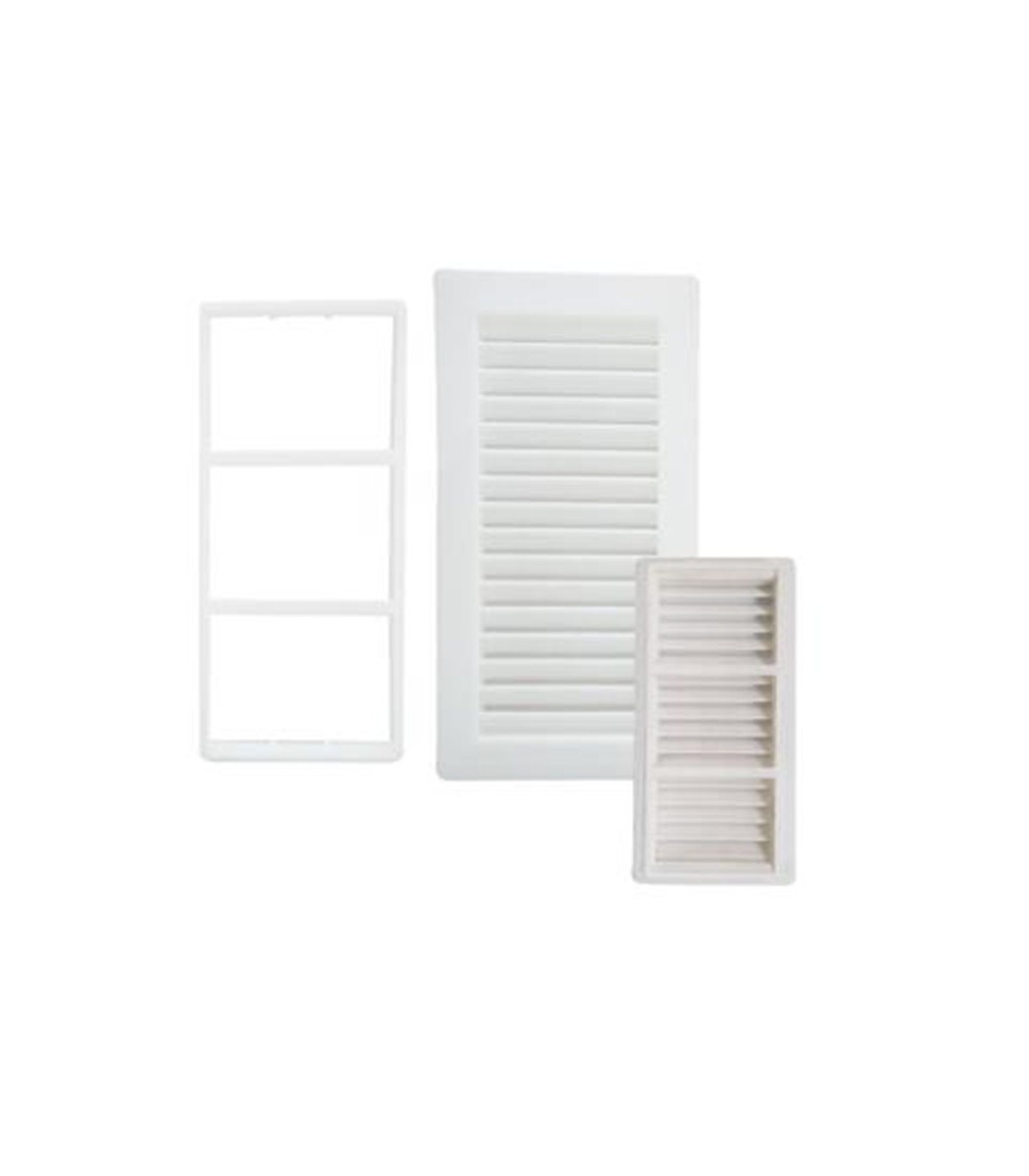 ABS blanco. Exterior 26x13,3 cm. Encastre 22x9,5 cm. Sin mosquitera.