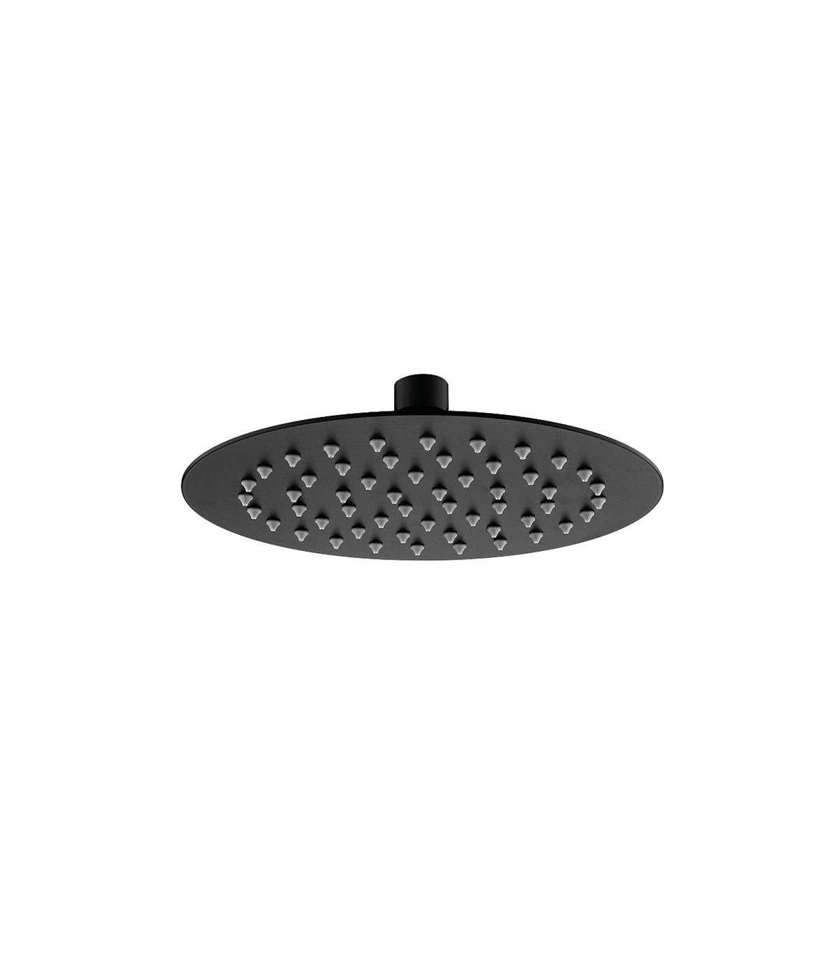 Redondo. ø 25 cm. Acero inox. acabado negro o cromo. Rosca H 1/2". 1 posición. Con rótula.