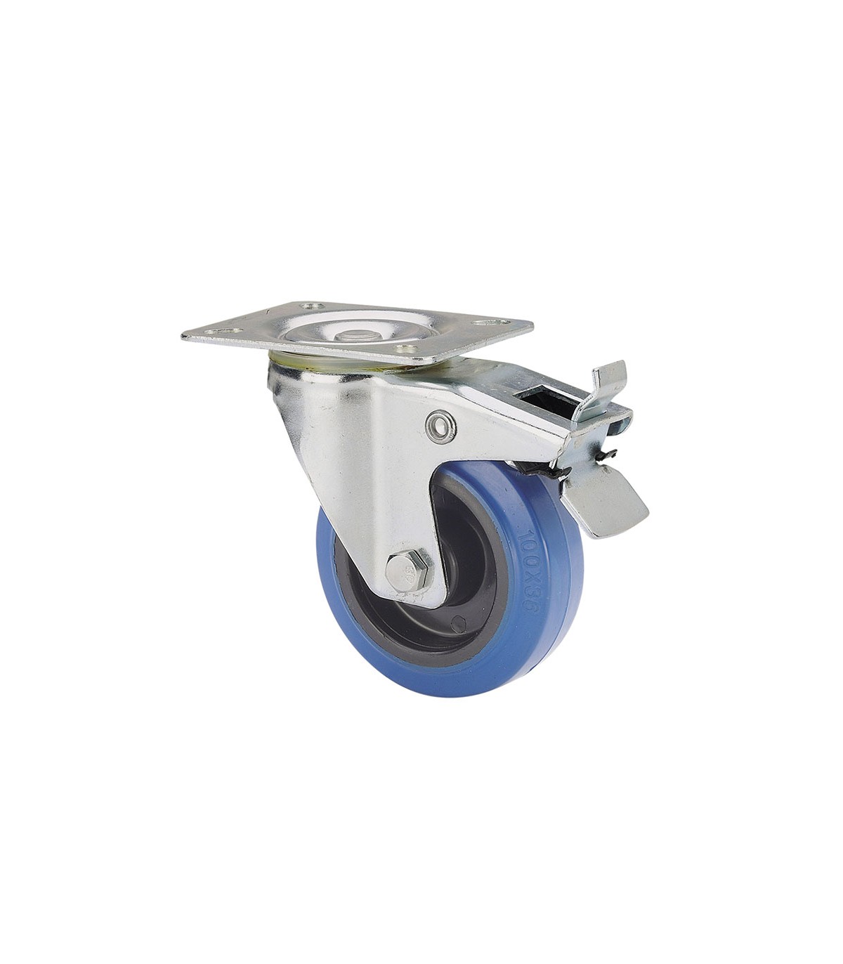 Rueda goma elástica azul. Cojinete de rodillos. No mancha el suelo. Gran absorción golpes vibraciones.