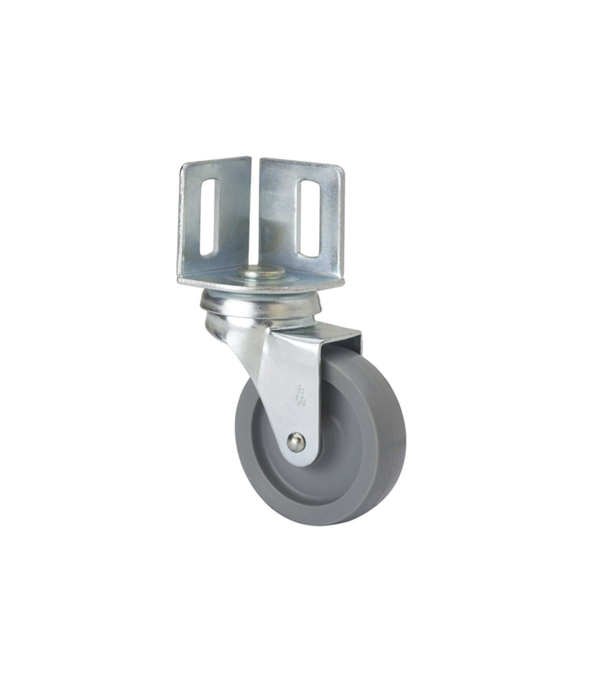 Esquinero giratorio sin freno. Rueda de polipropileno gris con protectores incluidos de serie. Cojinete liso. Soporte con rodamiento a bolas. Acabado cincado. Indeformable. Fácil desplazamiento. Norma EN-12528.