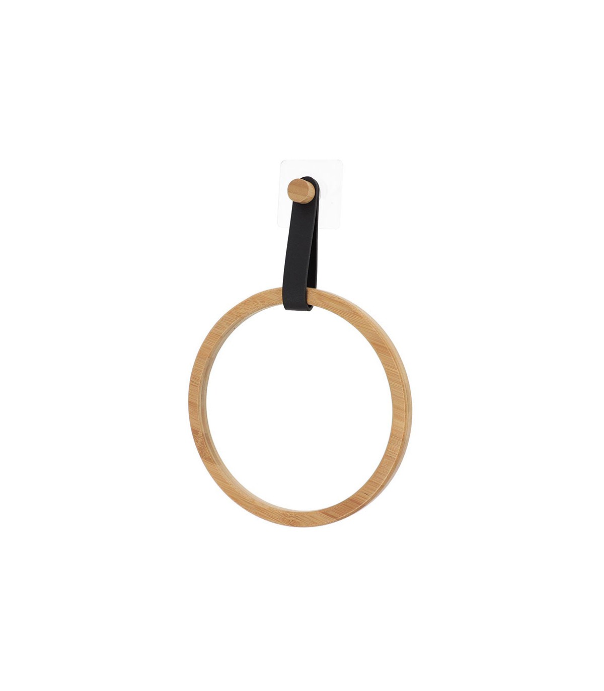 Sistema fijación adhesiva 3M apta para superficies lisas no porosas, no hace falta taladrar pared. Bambú/metal negro y soportes imitación acero