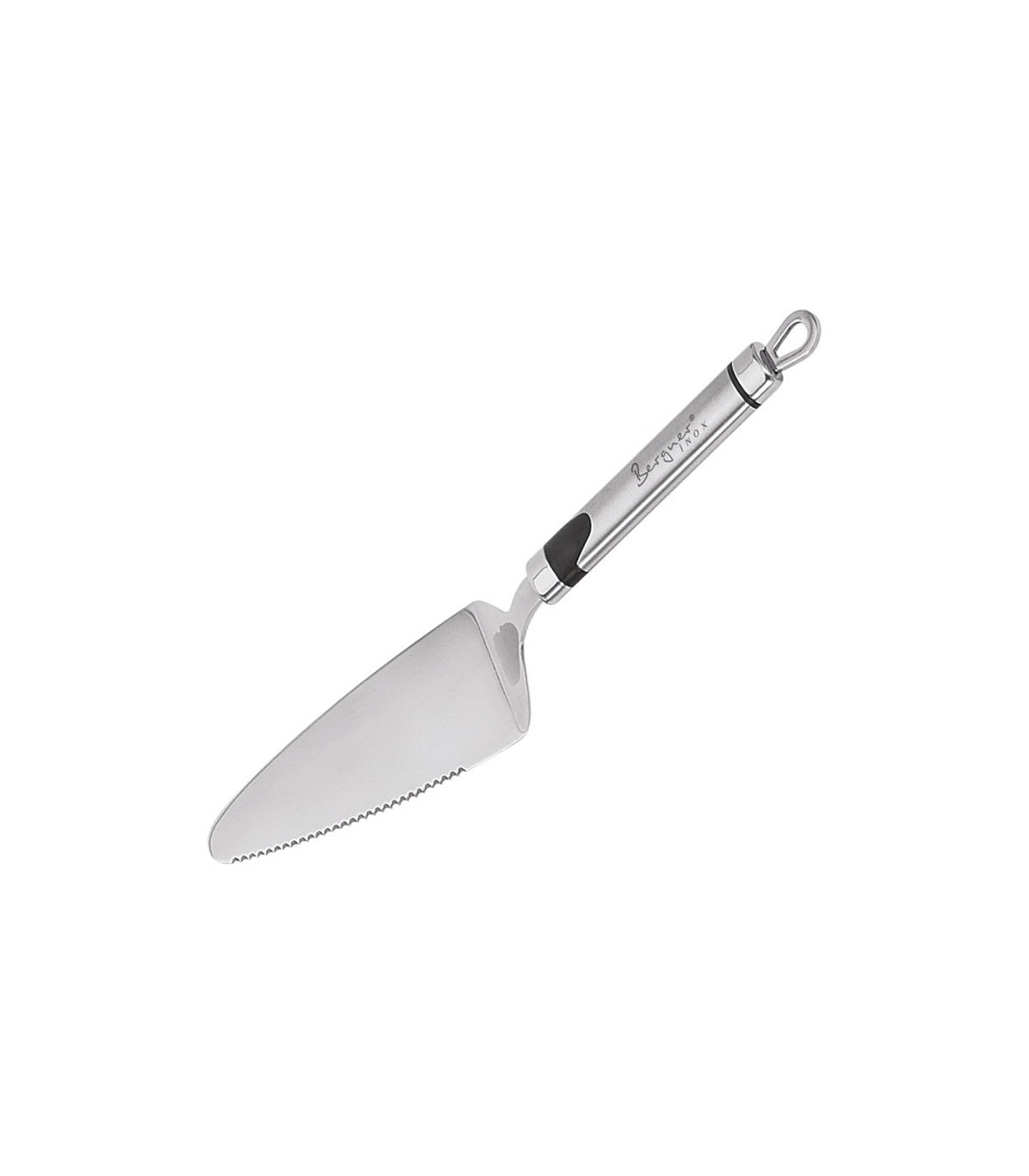Acero inox. Mango con forma ovalada y agujero para colgar. Fácil de limpiar.