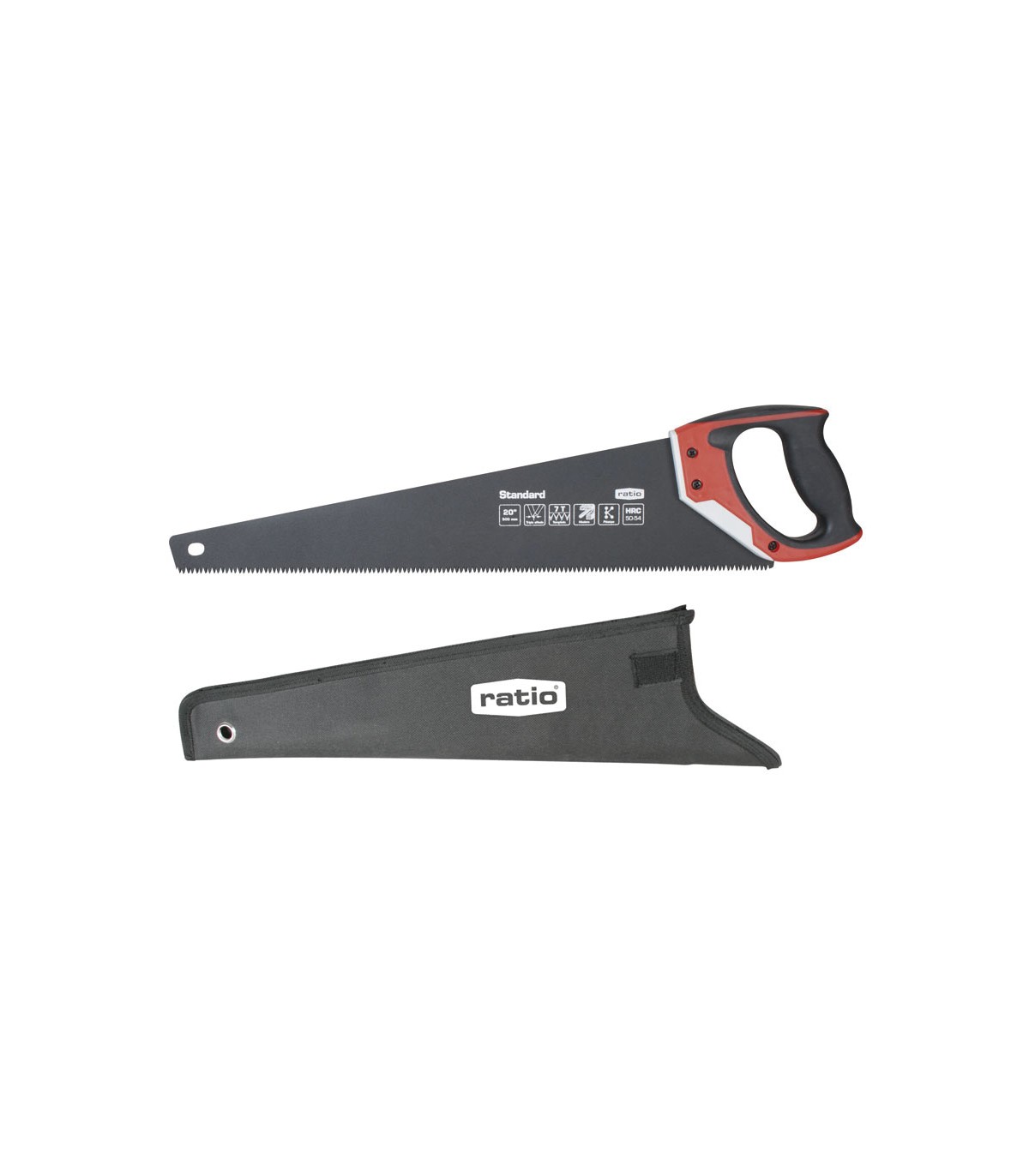 Dentado triple afilado 7 TPI (dientes por pulgada). Hoja de acero teflonado especial 65 Mn. Mango ergonómico bimaterial. Funda protectora de nilón y protector magnético de filo.
