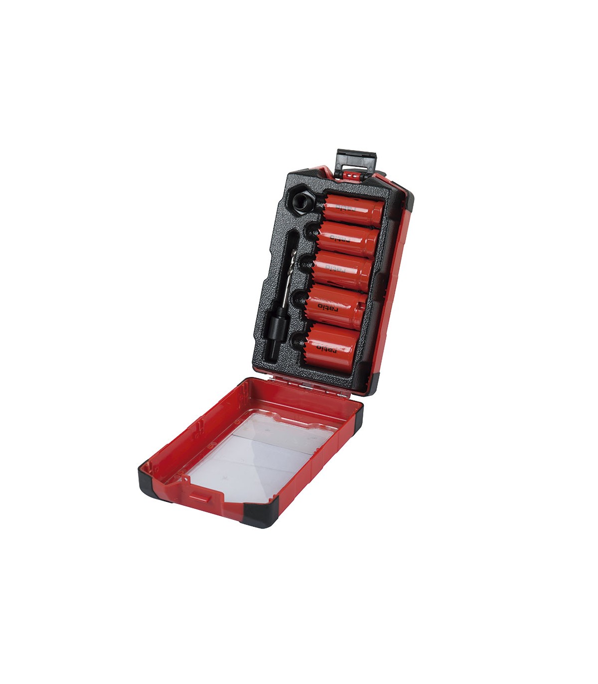 Acero bimetal. Diente variable, paso de 4 a 6 dientes por pulgada. Estuche bimaterial 7 piezas.