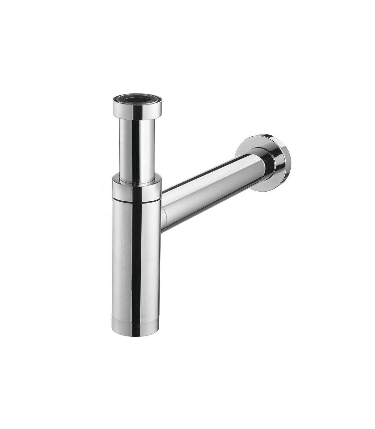 Salida horizontal con alargo y embellecedor. Latón. Altura de sifonaje 175 < 270 mm.