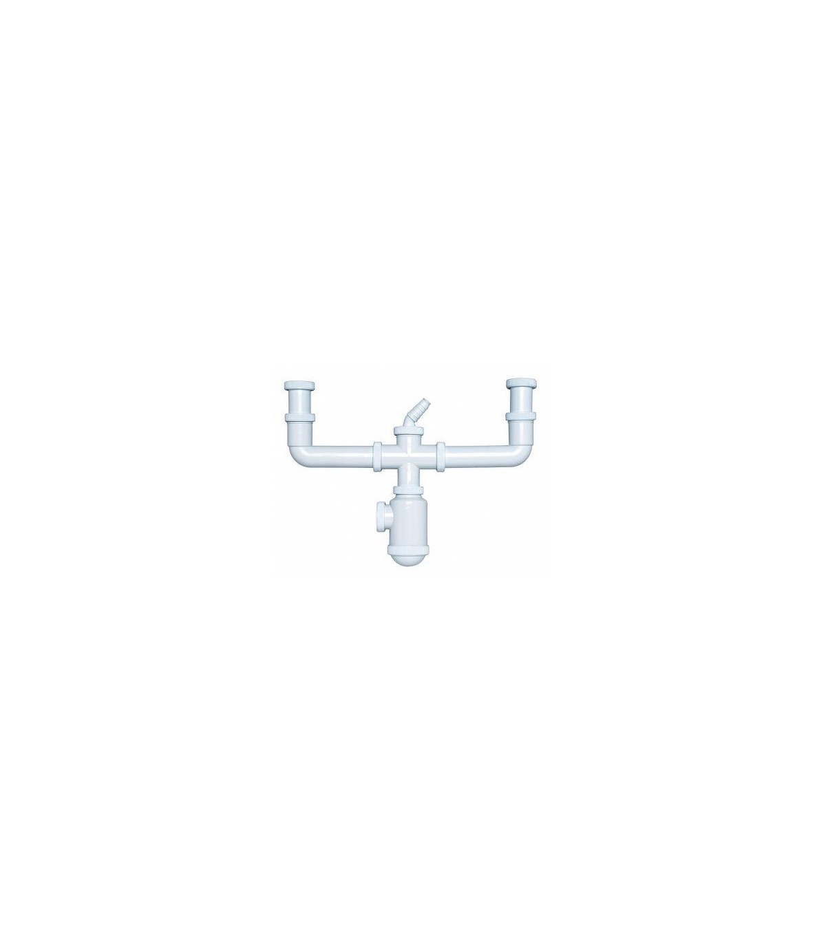 Salida horizontal con doble racor extensible y toma de electrodomésticos (tuercas locas). Se suministra con junta 1 1/"2 x ø 32 mm para reducir la salida de 1 1/2" a 1 1/4".