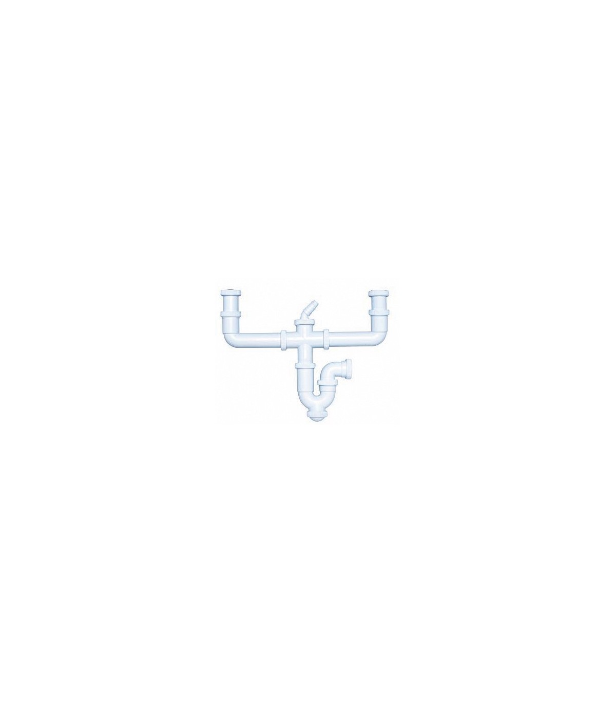 Salida horizontal con doble racor extensible y toma de electrodomésticos (tuercas locas). Se suministra junta 1 1/2" x ø 32 mm para reducir la salida 1 1/2" a 1 1/4".