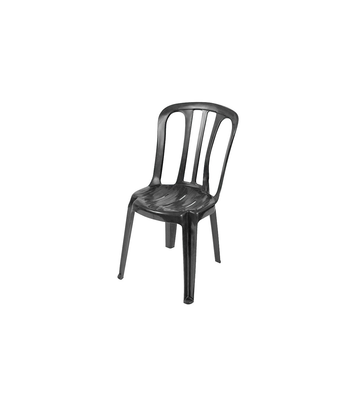 Diseño clásico de una sola pieza. Resistente a los rayos UV. De facil apilamiento y limpieza, apilable en altura hasta 34 uds. Homologada para uso publico. Dimensiones: 39,5xh.85,5 cm. Altura asiento 43,5 cm. 2,75 kg.