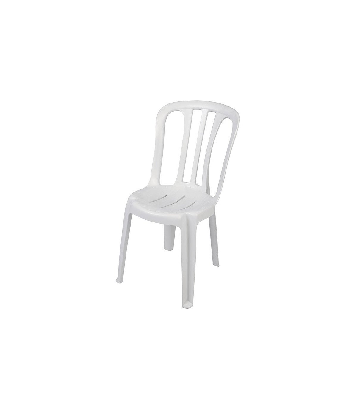 Diseño clásico de una sola pieza. Resistente a los rayos UV. De facil apilamiento y limpieza, apilable en altura hasta 34 uds. Homologada para uso publico. Dimensiones: 39,5xh.85,5 cm. Altura asiento 43,5 cm. 2,75 kg.