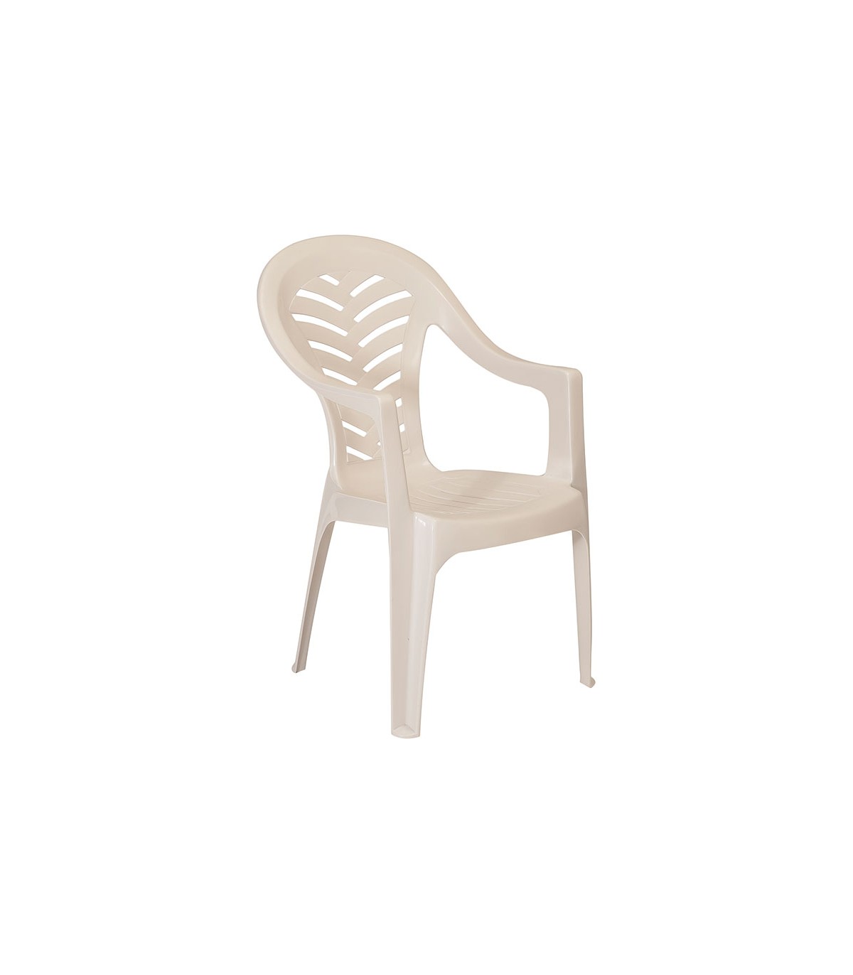 62x55xh.84 cm. Silla con brazos para uso exterior. Fabricada con polipropileno reciclado y reciclable. Apilable y con protección UV. Peso neto 2,6 kg.