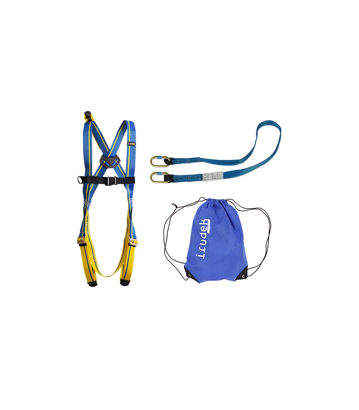 Arnés un punto, elemento amarre y 2 mosquetones.