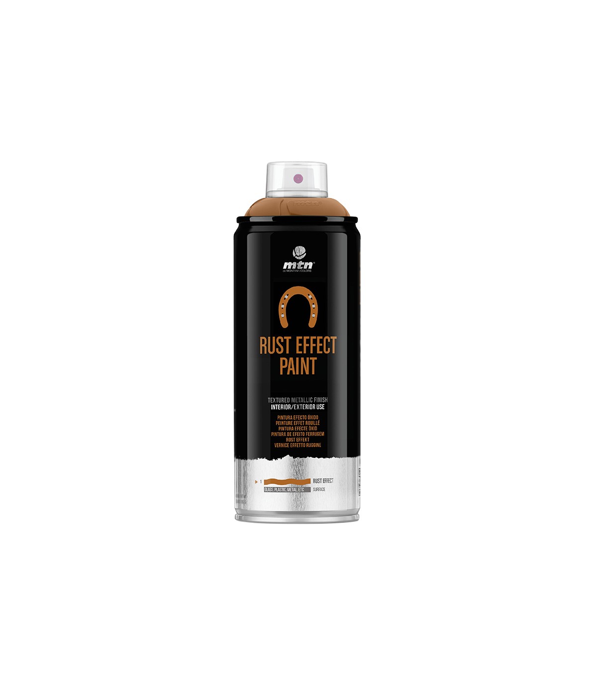 Acrílica decorativa texturizada, de secado rápido, que confiere una apariencia de metal oxidado a todo tipo de superficies. Translúcido. Facilidad de aplicación y repintado. Resistente al agua. 400 ml.