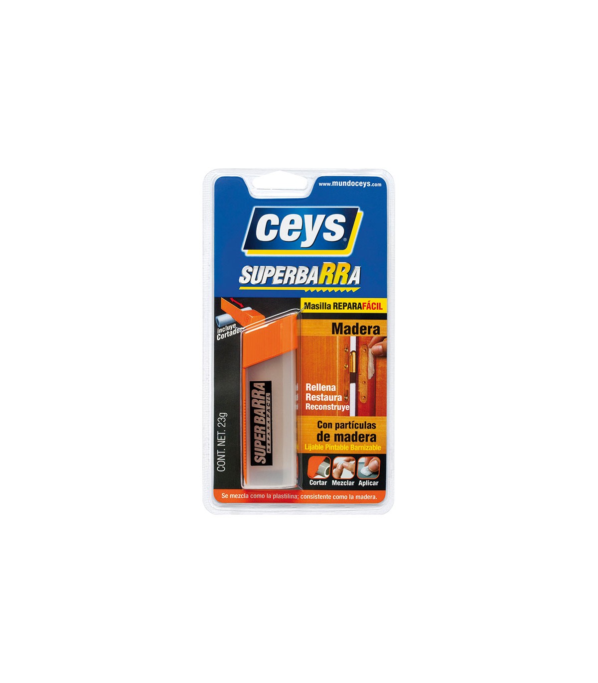 Repara todo tipo de maderas, aglomerados y DM. Adquiere la misma consistencia que la madera. Pintable.