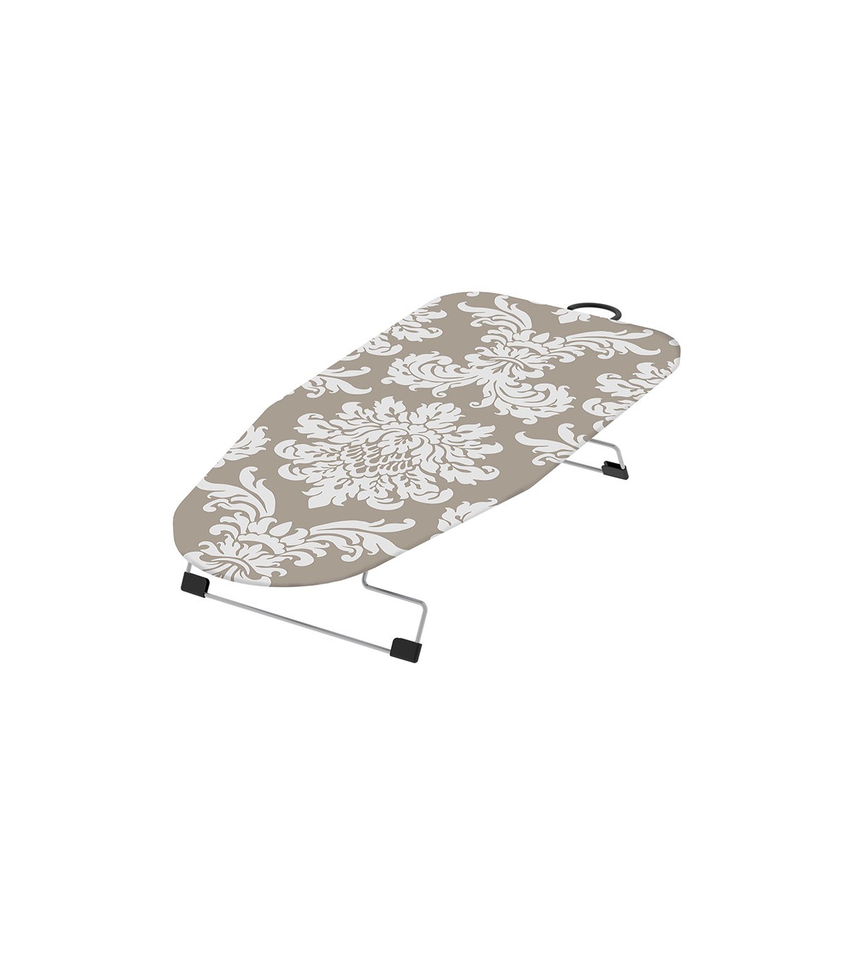 Tabla planchar de sobremesa. Patas plegables antideslizantes. Gancho de plástico retráctil. Funda 100% algodón.