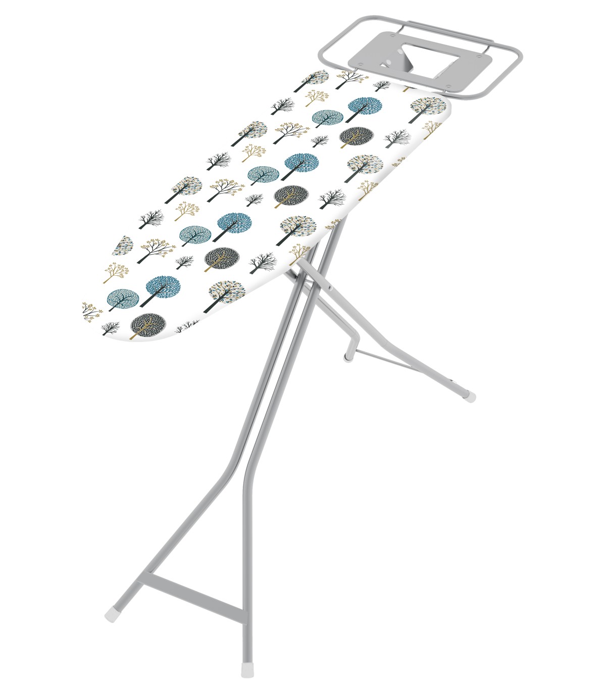 Rejilla metálica. Patas tubo ø 22 mm pintadas epoxi gris. Regulación altura 6 posiciones. Reposaplanchas especial centros planchado. Funda algodón 100% orgánica. Pies antideslizantes.
