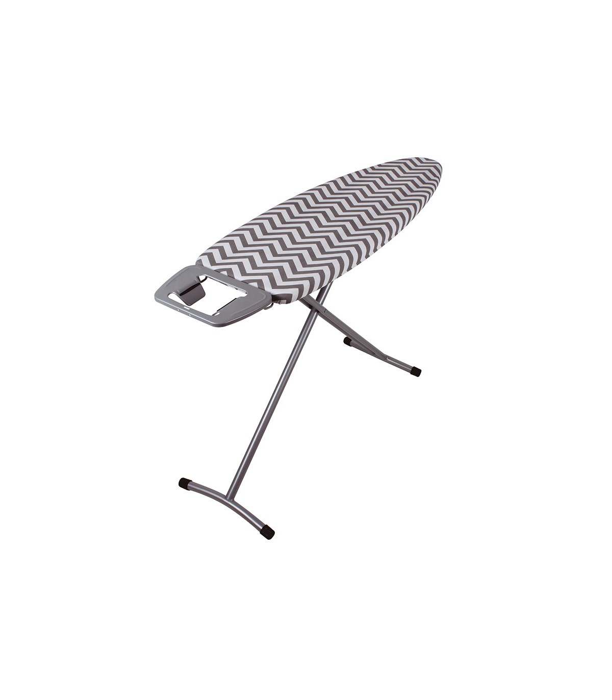 Rejilla metálica. Patas monotubo ø 28 mm pintadas epoxi negro. Base 35 mm. Regulación. altura 6 posiciones. Reposaplanchas tradicional. Funda algodón 100% orgánica y. metalizada. Pies antideslizantes.