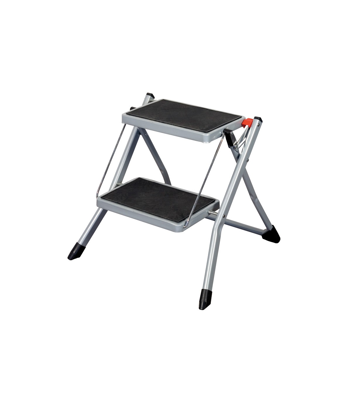 Acero. Dispositivo seguridad contra apertura durante el uso. Peldaños 30x20 cm. Asa de transporte.
