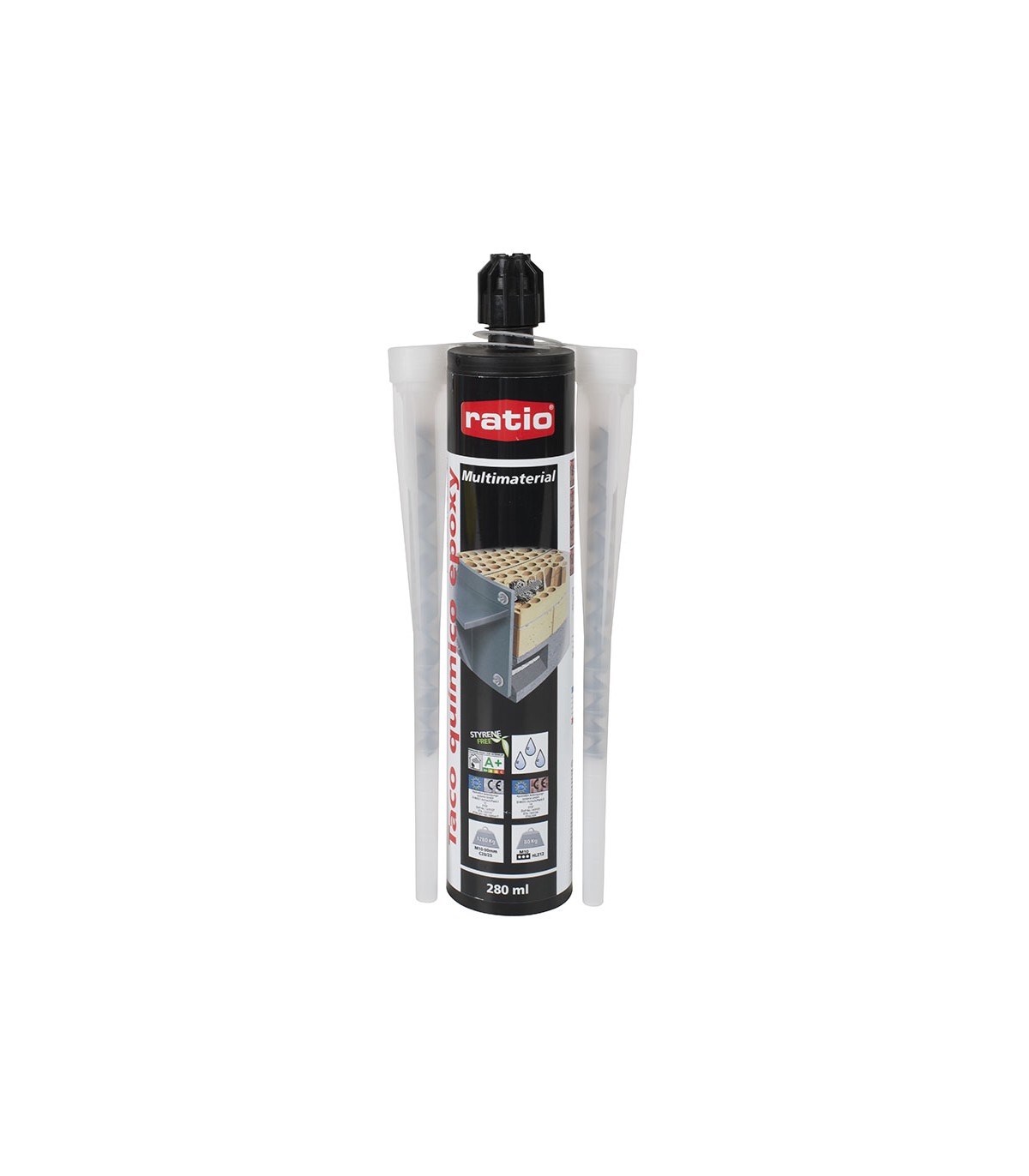 Resina epoxi sin estireno. Resistencia 1.280 kg en hormigón no fisurado y 80 kg en ladrillo hueco por punto de anclaje.