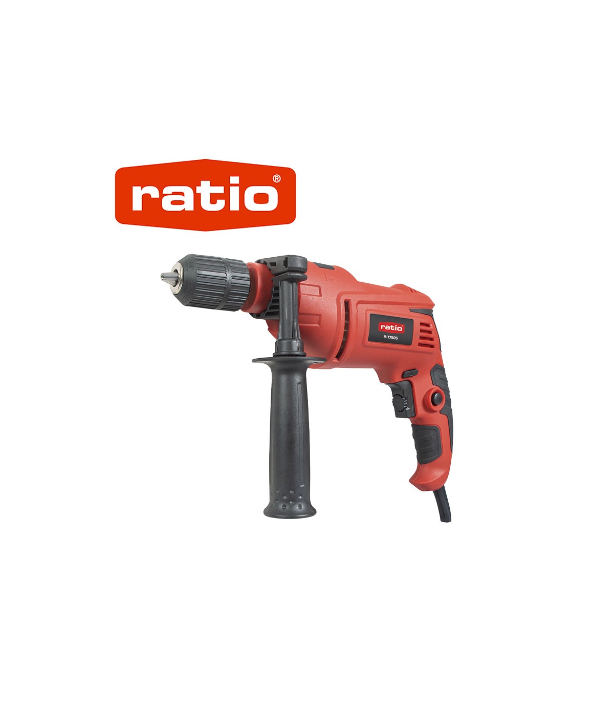 Electrónico-reversible. Portabrocas autómatico 13 mm. Empuñadura bimaterial. Empuñadura auxiliar y tope profundidad.