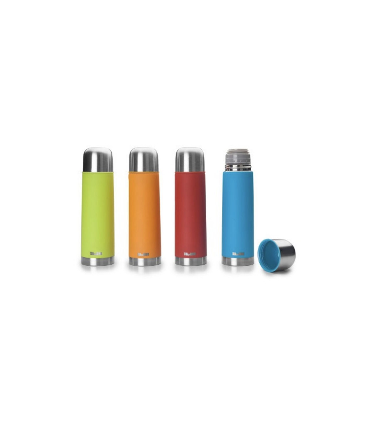 Acero inox 18/10. Doble pared. Caja expositora: 3 azul, 3 rojo, 3 verde, 3 melocotón.