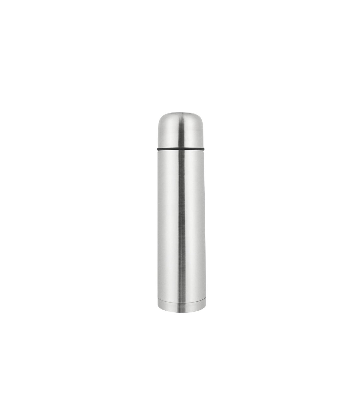 Acero inox. Doble pared, cámara de vacío. Tapón con pulsador dosificador. Irrompible.