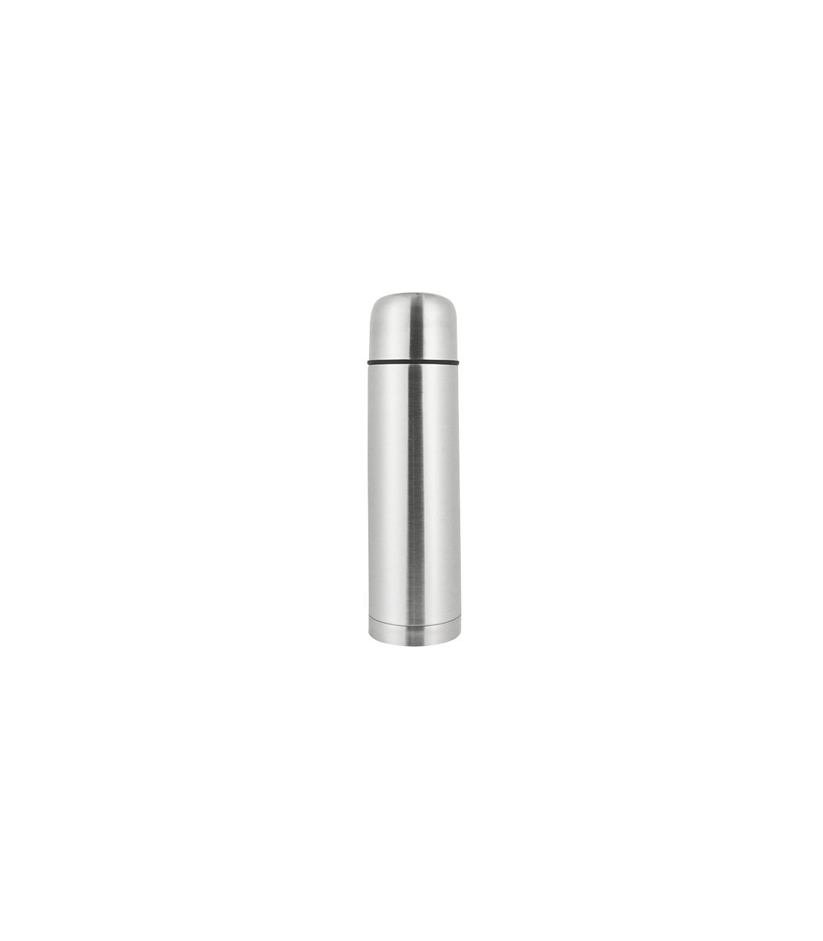 Acero inox. Doble pared, cámara de vacío. Tapón con pulsador dosificador. Irrompible.
