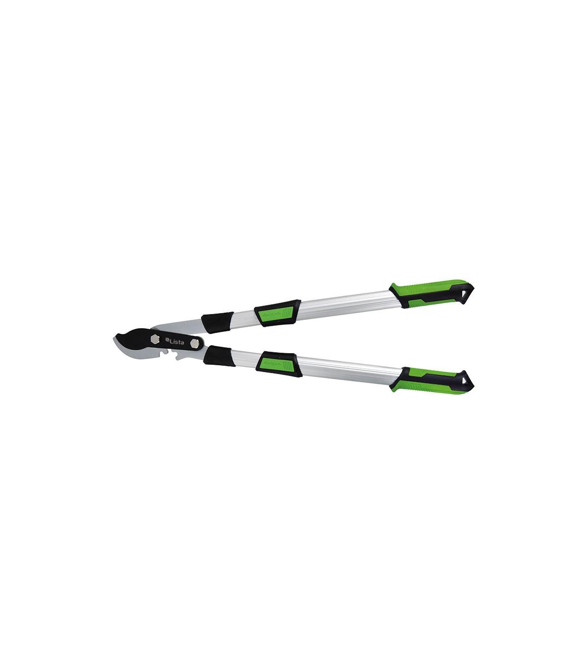 Brazos tubulares telescopicos de aluminio. Corte deslizante (Bypass). Sistema de desmultiplicación de fuerza (mediante unos engranajes). Cuchilla recubrimiento antiadherente. Empuñaduras ergonómicas antideslizantes.