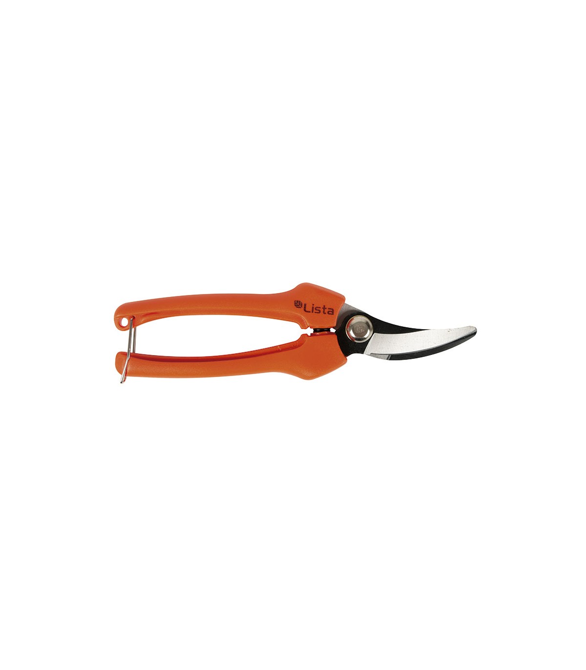 Corte deslizante (By-Pass). Cuchillas alta calidad acabado pavonado. Hoja superior acero SK-5 y hoja inferior acero S50C. Mangos ergonómicos ABS. Tijera muy ligera. Cierre seguridad. Con muelle y tope de goma..