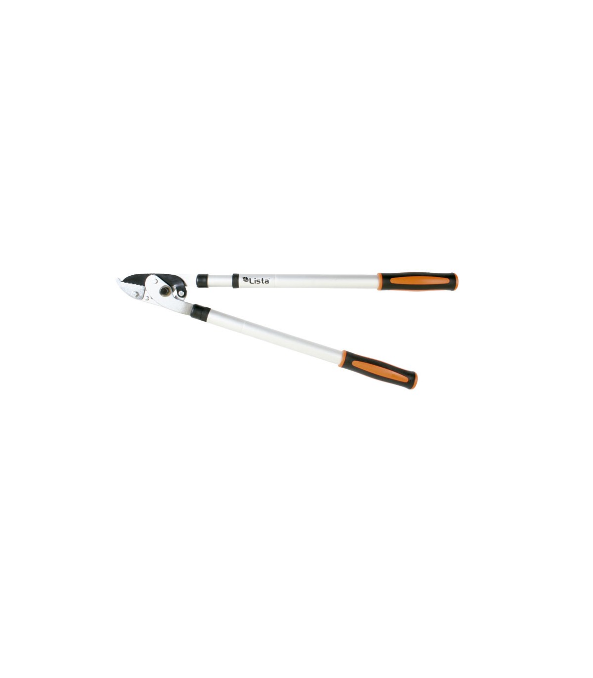 Brazos tubulares telescópicos de aluminio. Tipo yunque. Cuchilla recubrimiento antiadherente. Sistema de desmultiplicación de fuerza. Empuñaduras ergonómicas antideslizantes.