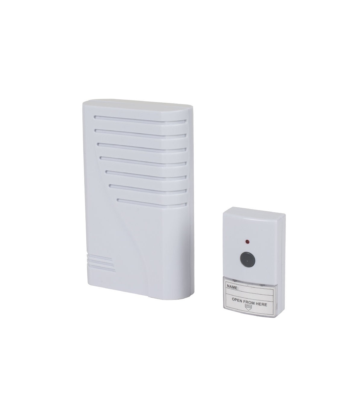 Nivel de sonido 85 dB. Alcance de la señal hasta 80 metros sin obstáculos. 2 melodías. Color blanco. Fácil de instalar. El timbre funciona con 3 pilas LR14 C (no incluidas), y el transmisor 1 pila 12V / A23 (incluida).