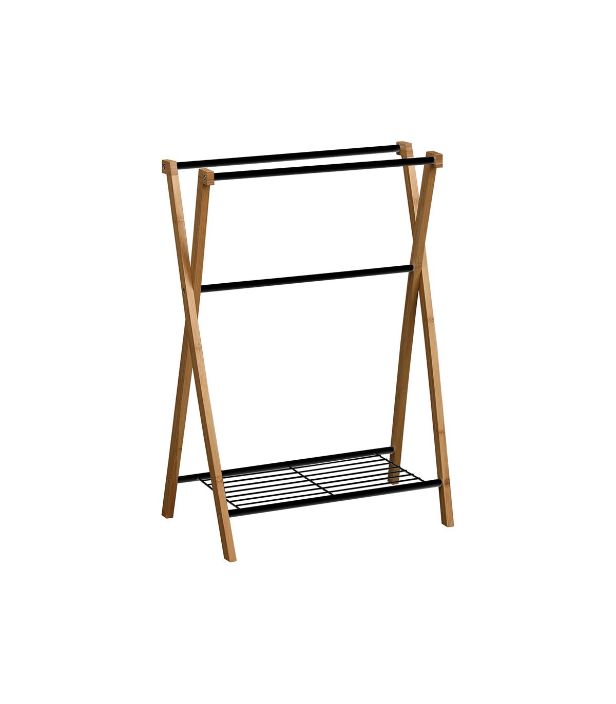 Toallero estructura metal negro. 3 barras bambú + estante.