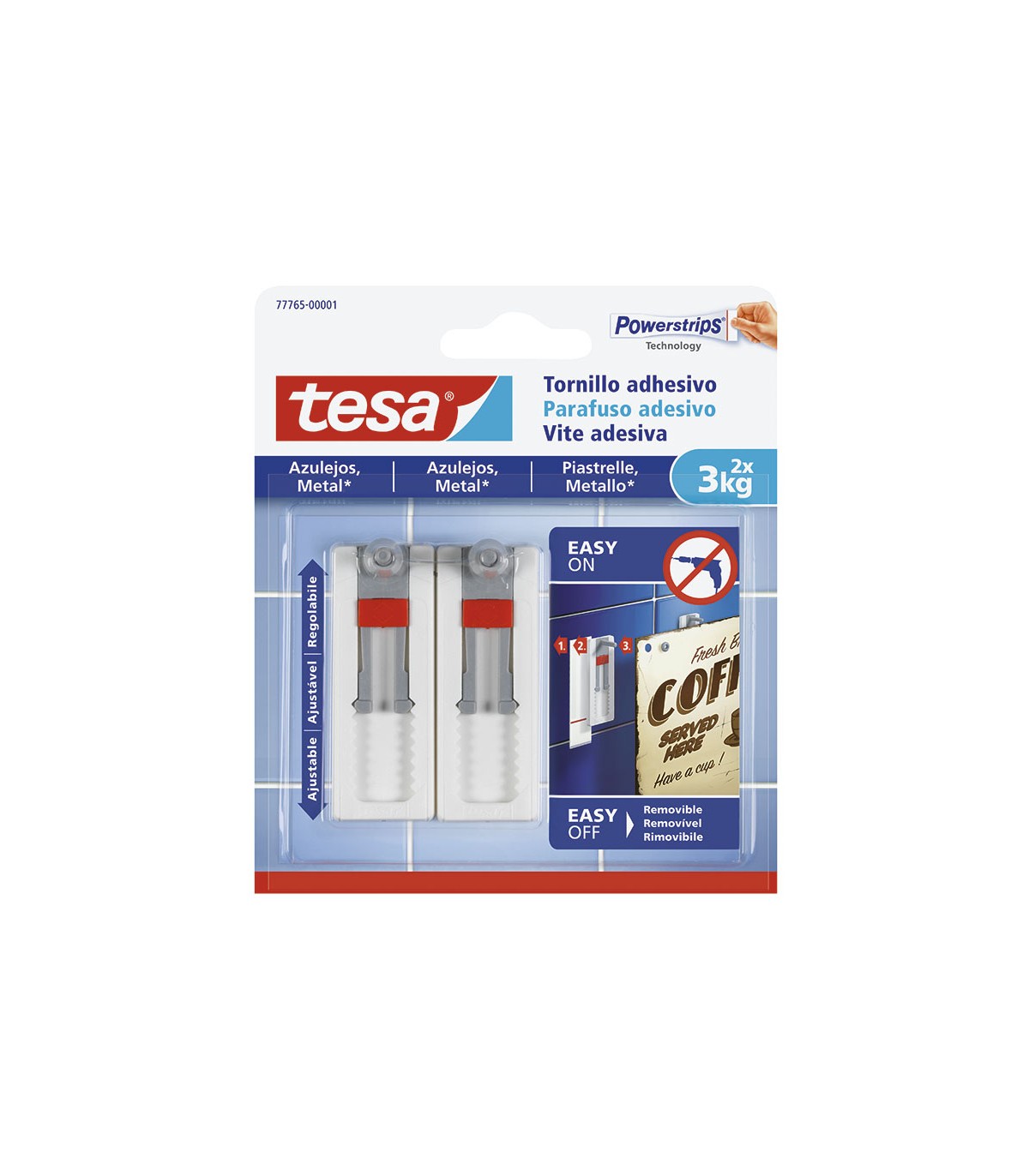 Sin necesidad de hacer agujeros. Enganche fácil y sin dejar residuos al quitarlos. Color blanco. Blíster 2 unid.