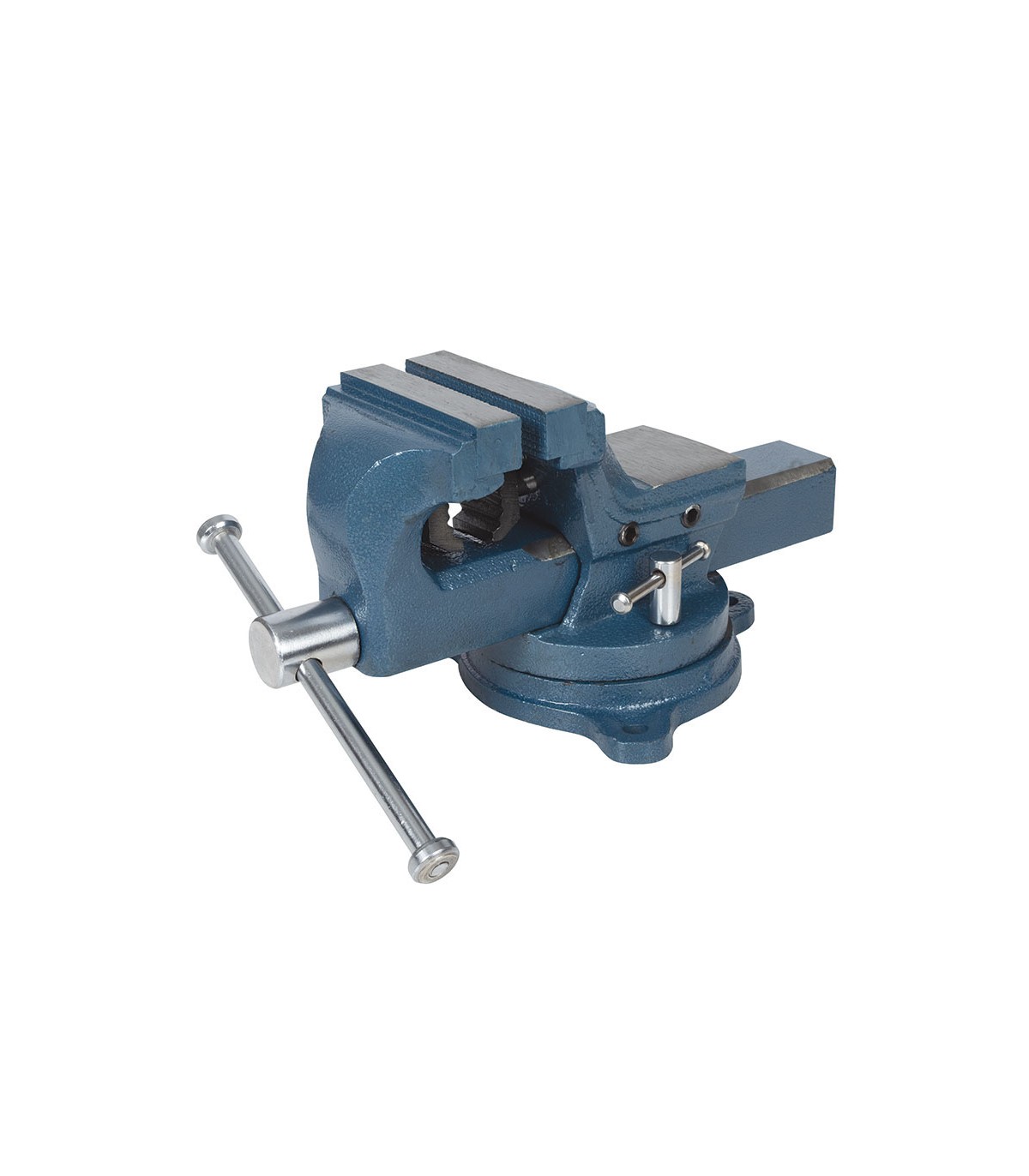 Forjado de alta calidad industrial. Mordazas para tubos. Con 2 tornillos laterales para ajuste de guía. Base giratoria. Yunque incluido.
