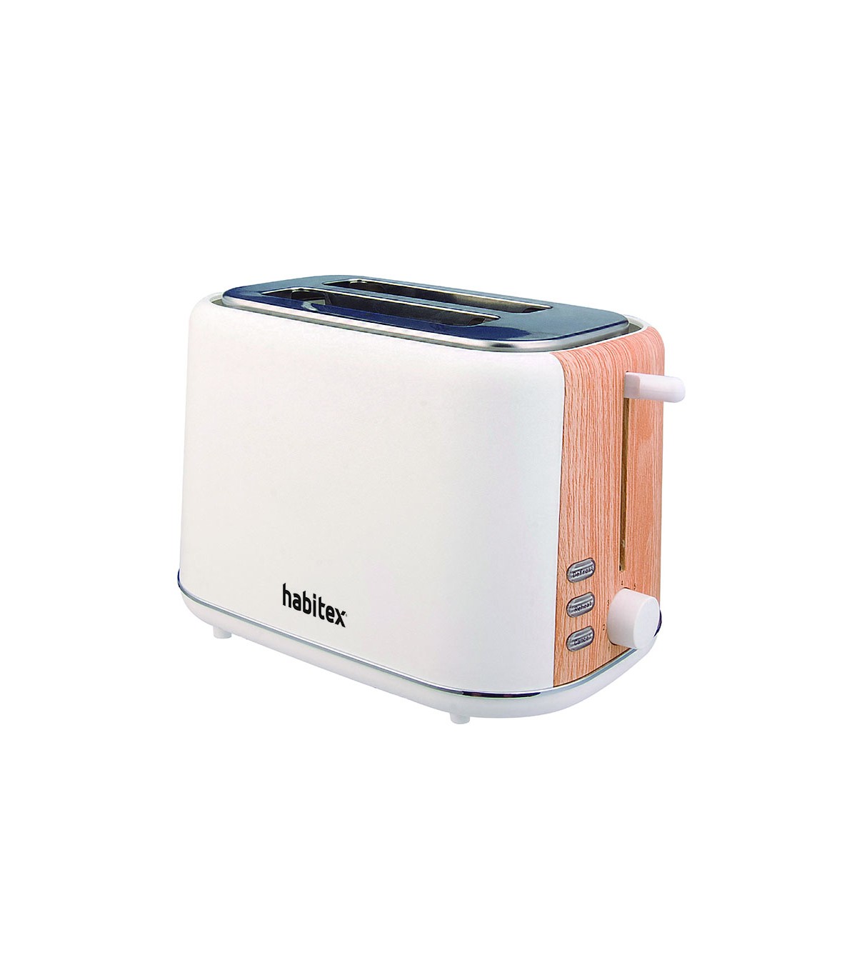2 ranuras. Potencia 800 W. Carcasa plástica con acabado mate. 7 niveles de tostado y funciones de recalentar, descongelar y cancelar. Bandeja recogemigas.